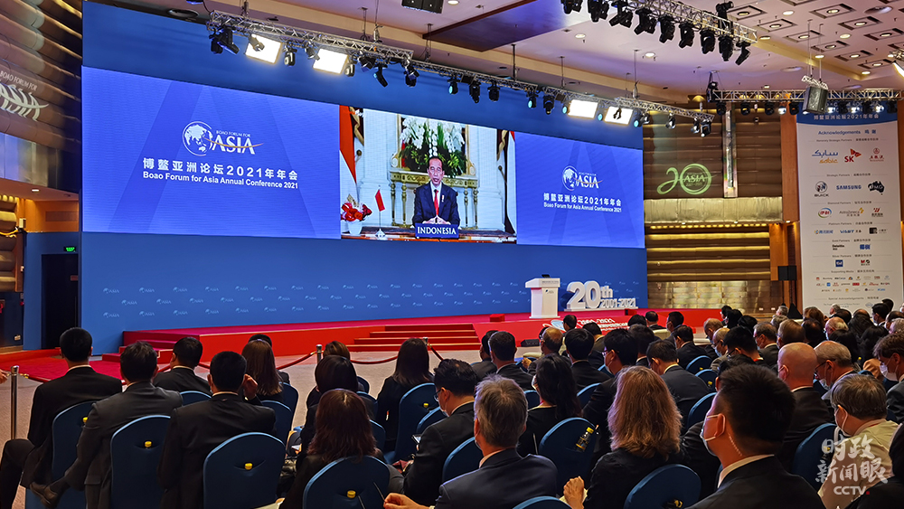 △印尼總統(tǒng)佐科、韓國總統(tǒng)文在寅、柬埔寨首相洪森應邀以視頻方式出席年會。(總臺央視記者胡瑋拍攝)