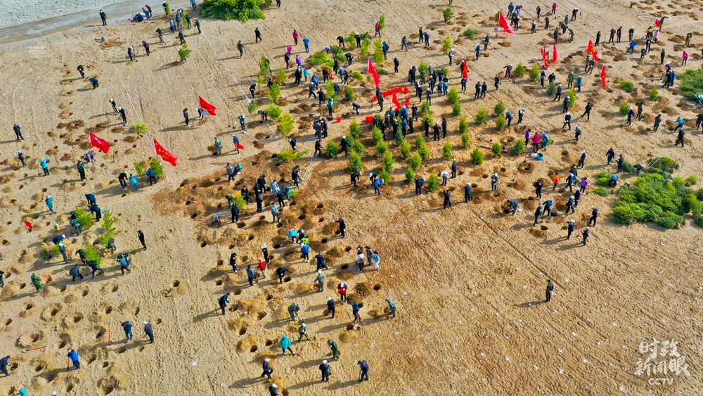△4月15日,甘肅張掖萬畝常青林基地植樹現(xiàn)場(chǎng)。(圖/視覺中國(guó))