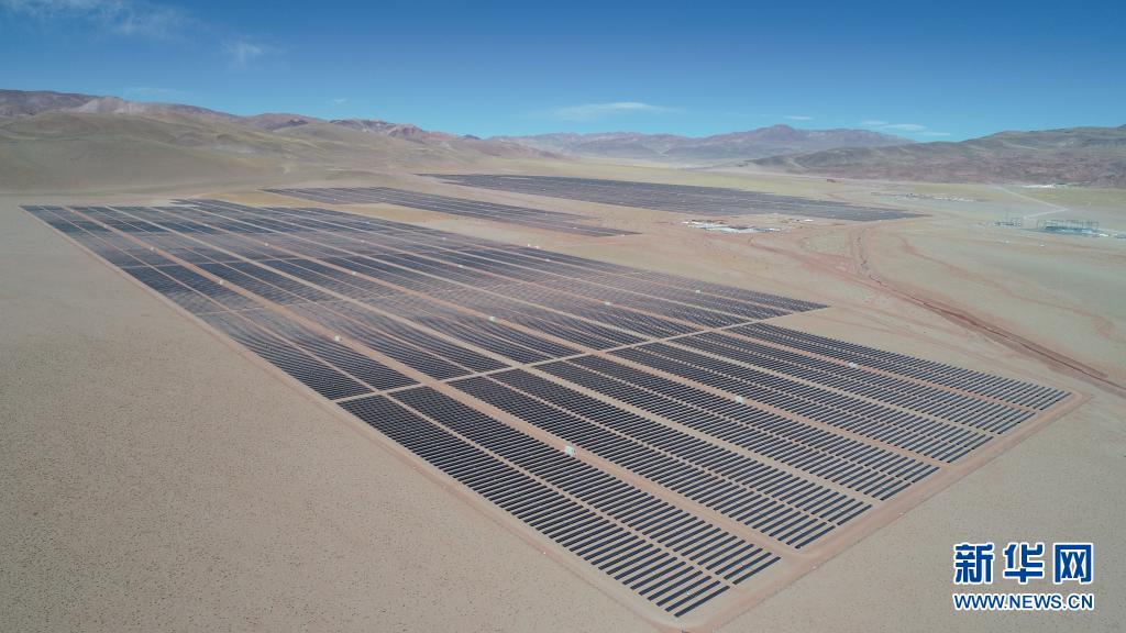 這是2020年5月11日拍攝的阿根廷高查瑞300兆瓦光伏發(fā)電項目(無人機照片)。由中國電力建設集團和上海電力建設有限責任公司(上海電建)聯(lián)合中標的阿根廷高查瑞300兆瓦光伏發(fā)電項目位于該國北部胡胡伊省的高原地區(qū),項目場址海拔超過4000米。北部高原是阿根廷最貧窮的地區(qū)之一,許多民眾日常用電需求無法得到保障。高查瑞光伏發(fā)電項目投入使用后,胡胡伊省將擺脫完全依靠外省供電的歷史,當?shù)仉娏ω摵傻木o張狀況將得到極大緩解,有助于促進當?shù)亟?jīng)濟發(fā)展,改善民眾生活。新華社發(fā)(上海電建阿根廷高查瑞300兆瓦光伏發(fā)電項目項目部供圖)