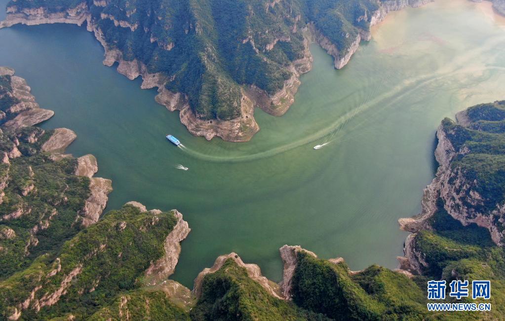 這是在河南濟源拍攝的“黃河三峽”景色(2020年9月12日攝,無人機照片)。新華社記者 郝源 攝