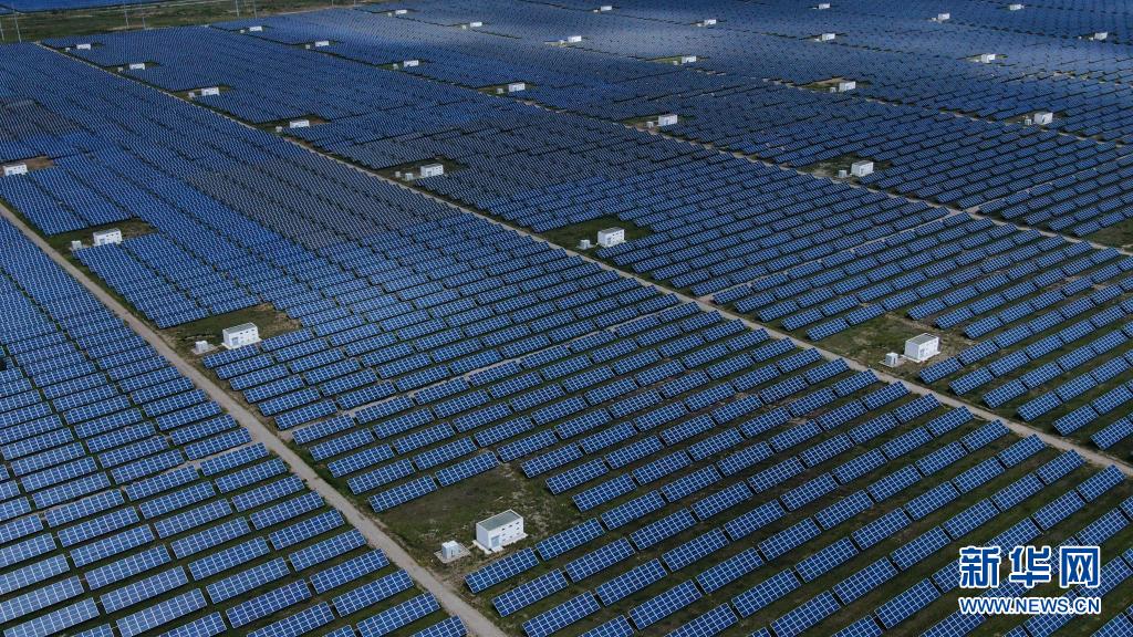 青海省海南藏族自治州共和縣塔拉灘光伏電站(2020年8月17日攝,無人機照片)。新華社記者 張龍 攝