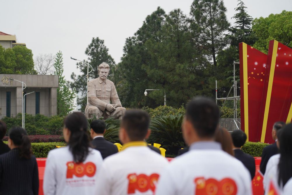 ↑2021年4月2日,人們在江西省南昌市方志敏廣場參加紀(jì)念活動,緬懷先烈,開展黨史學(xué)習(xí)教育。