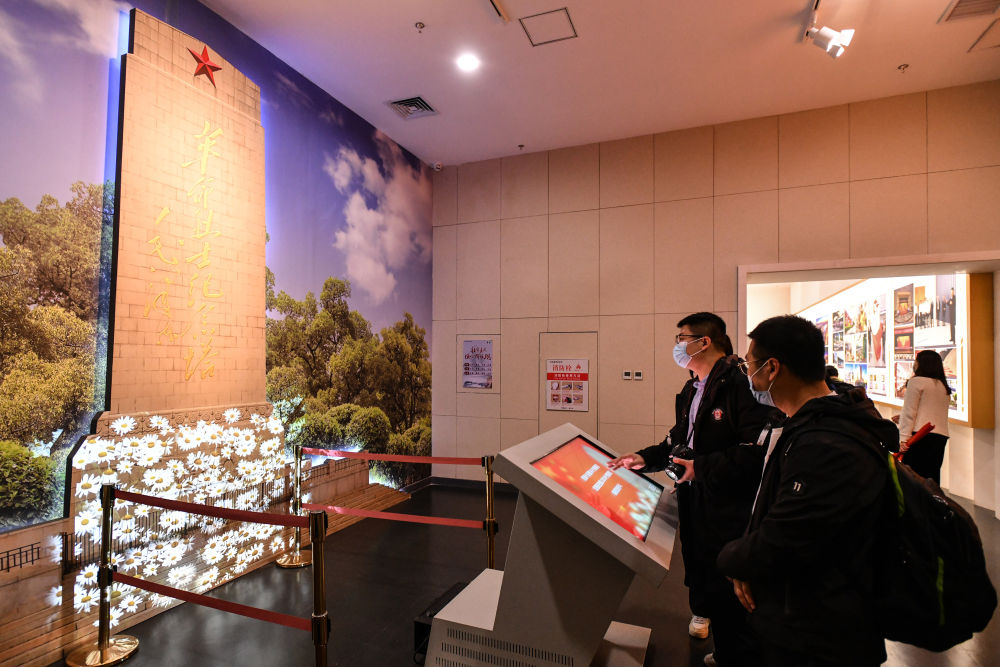 ↑2021年4月2日,參觀者在山東濟南戰(zhàn)役紀(jì)念館內(nèi)學(xué)習(xí)黨史、緬懷先烈。