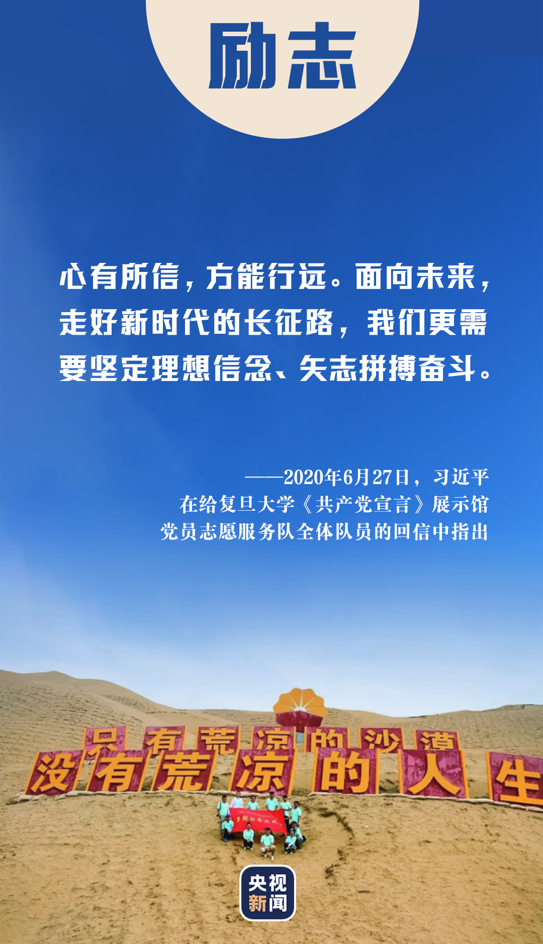 “青年最富有朝氣、最富有夢想”“好兒女志在四方,有志者奮斗無悔”“中華民族偉大復興終將在廣大青年的接力奮斗中變?yōu)楝F(xiàn)實”......習近平總書記非常重視青年工作,常鼓勵青年追求夢想、努力奮斗。諄諄良言、殷殷囑托,點燃廣大青年的奮斗熱情,用實際行動唱好青春之歌。