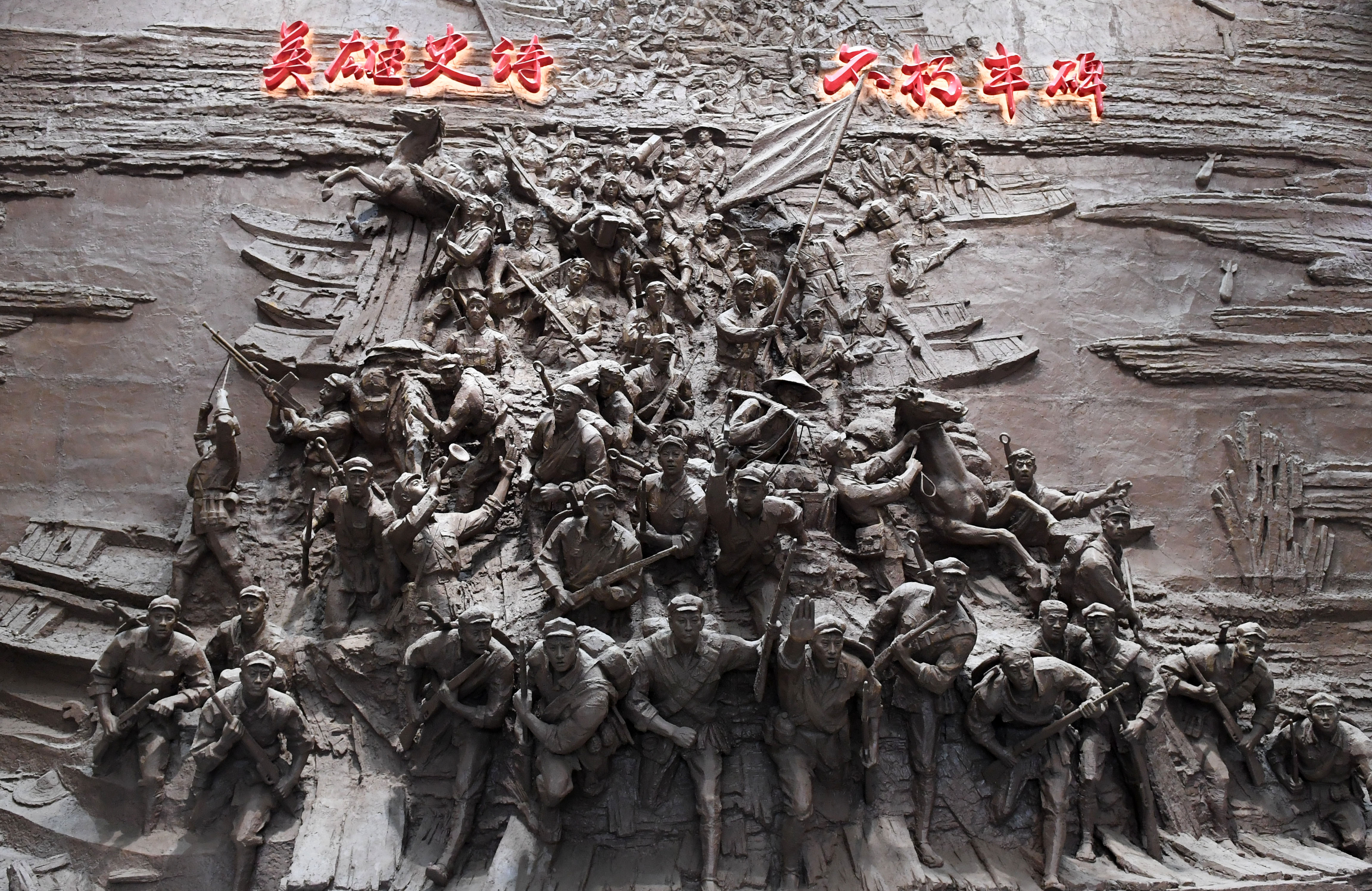 △這是位于廣西全州的紅軍長(zhǎng)征湘江戰(zhàn)役紀(jì)念館內(nèi)的雕塑(2021年2月3日攝)。新華社記者 陸波岸 攝
