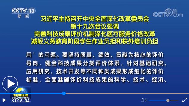 完善科技成果評價機制深化醫(yī)療服務(wù)價格改革 減輕義務(wù)教育階段學(xué)生作業(yè)負(fù)擔(dān)和校外培訓(xùn)負(fù)擔(dān)