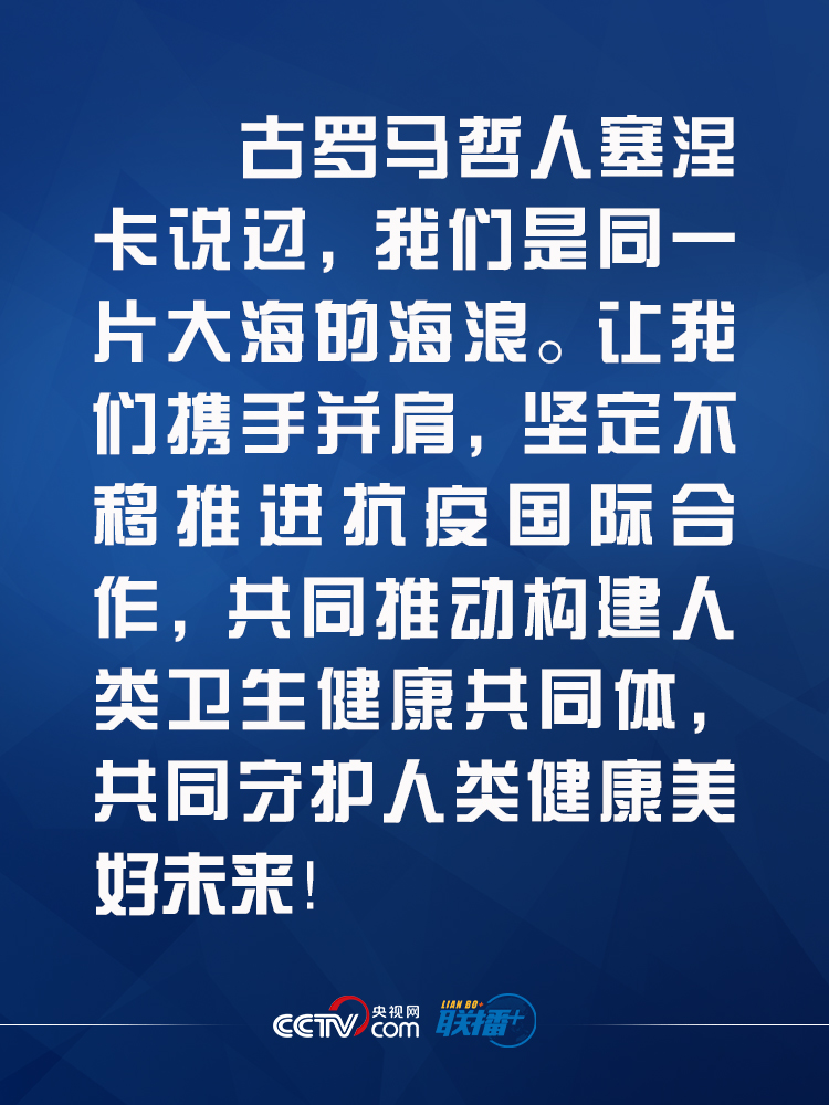 在講話中,習近平主席就全球抗疫合作發(fā)表5點意見,并為繼續(xù)支持全球團結(jié)抗疫,鄭重宣布中國即將采取的切實舉措。