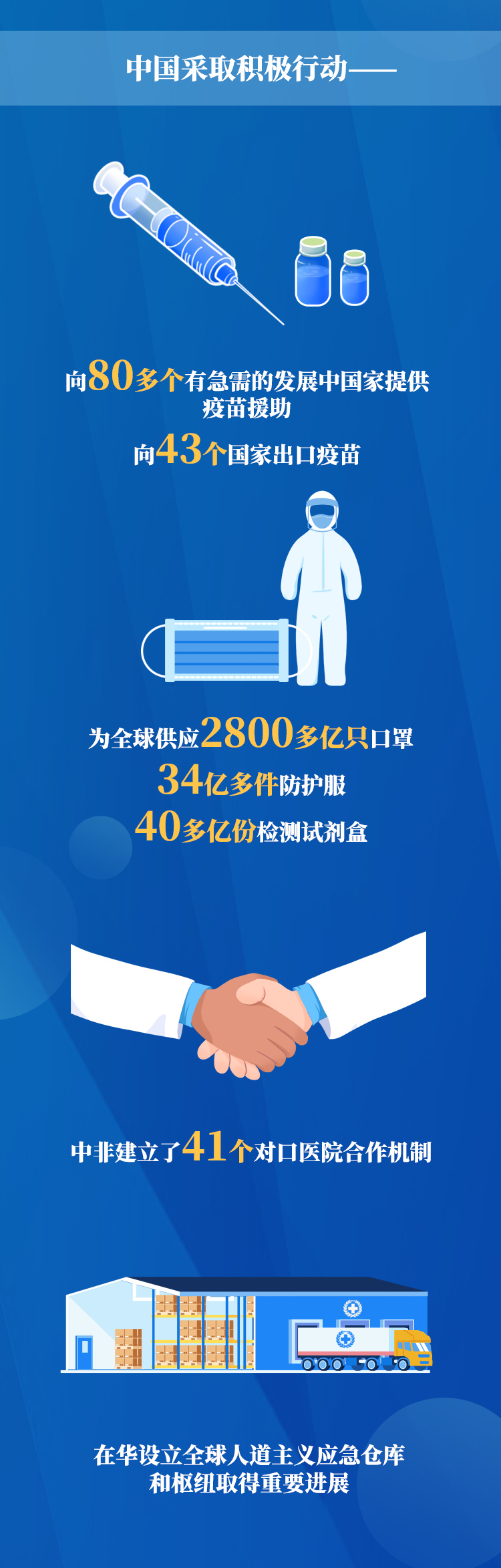 一年來(lái),疫情反復(fù),病毒變異,形勢(shì)依然復(fù)雜嚴(yán)峻,國(guó)際社會(huì)急切期待更多的信心、希望和合作。習(xí)近平主席心系蒼生,胸懷世界,領(lǐng)導(dǎo)開展新中國(guó)歷史上規(guī)模最大的全球人道行動(dòng),為全球抗疫貢獻(xiàn)中國(guó)智慧和力量,用實(shí)際行動(dòng)踐行人類衛(wèi)生健康共同體理念,得到國(guó)際社會(huì)高度肯定和積極響應(yīng)。