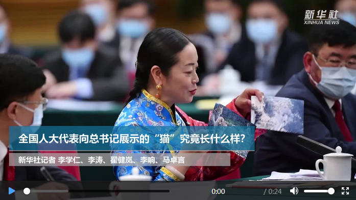 3月7日下午,人民大會(huì)堂東大廳,青海代表團(tuán)審議現(xiàn)場(chǎng),孔慶菊代表拿出照片,請(qǐng)坐在對(duì)面的習(xí)近平總書(shū)記觀看。一張照片中,是漫步在草叢中的荒漠貓;另一張,則是行走在樹(shù)叢中的雪豹。“以前很少見(jiàn)的珍稀物種,現(xiàn)在頻頻現(xiàn)身了。”孔慶菊說(shuō)。