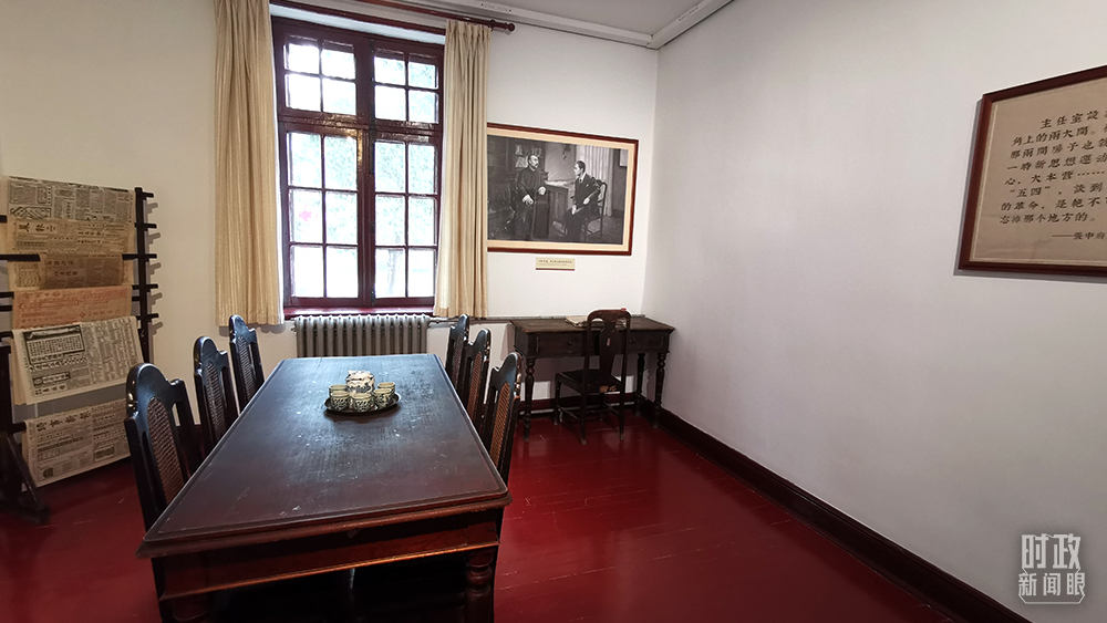△李大釗常在辦公室與進步青年共同討論、研究各種新思潮。1920年還在此會見共產(chǎn)國際代表維經(jīng)斯基,研究醞釀成立共產(chǎn)黨。(總臺央視記者李曉周拍攝)