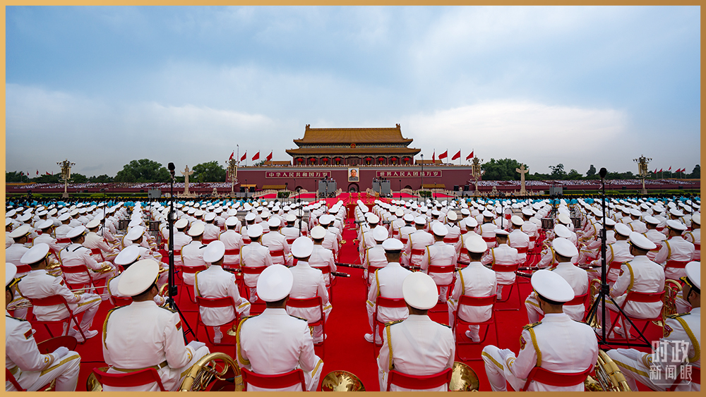 △中國人民解放軍聯(lián)合軍樂團(tuán)靜待演奏開始。(總臺記者廖江衡拍攝)