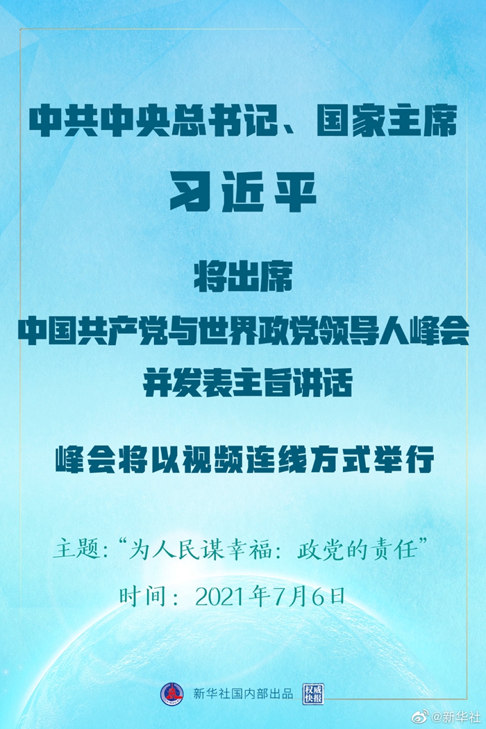 原標(biāo)題:權(quán)威快報丨習(xí)近平將出席中國共產(chǎn)黨與世界政黨領(lǐng)導(dǎo)人峰會