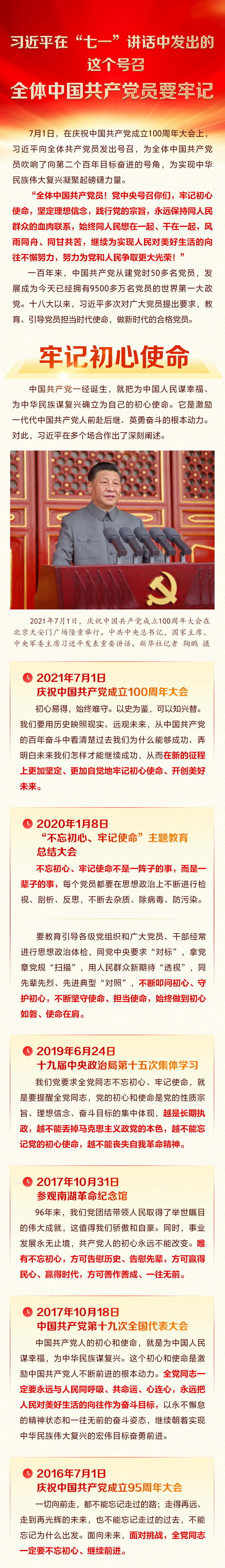 習近平在“七一”講話中發(fā)出的這個號召 全體中國共產(chǎn)黨員要牢記