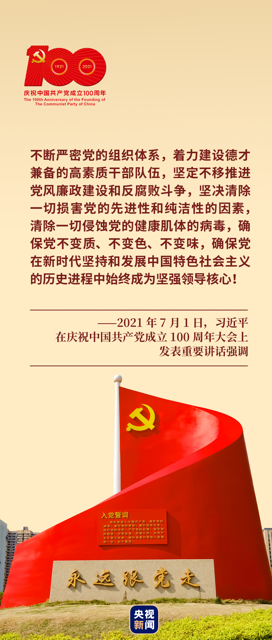 新征程上,筑牢信仰之基、補(bǔ)足精神之鈣、把穩(wěn)思想之舵,風(fēng)華正茂的百年大黨不斷從勝利走向新的勝利。