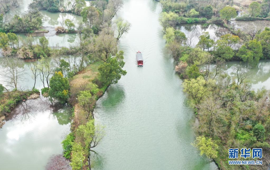 浙江杭州西溪濕地水道(2021年3月2日攝,無(wú)人機(jī)照片)。 新華社記者 翁忻旸 攝