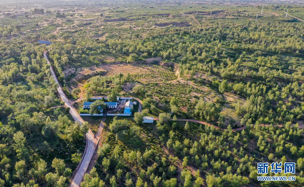 這是2020年9月7日在內(nèi)蒙古鄂爾多斯市烏審旗毛烏素沙地拍攝的一處治沙站(無(wú)人機(jī)照片)。 新華社記者 連振 攝
