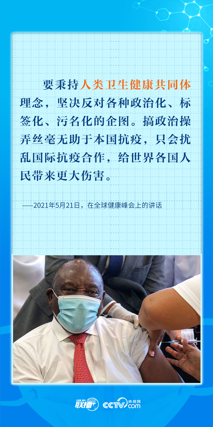 在書面致辭中,習(xí)近平主席再次鄭重表示,中國始終秉持人類衛(wèi)生健康共同體理念,而且會(huì)繼續(xù)盡己所能,幫助廣大發(fā)展中國家應(yīng)對(duì)疫情。