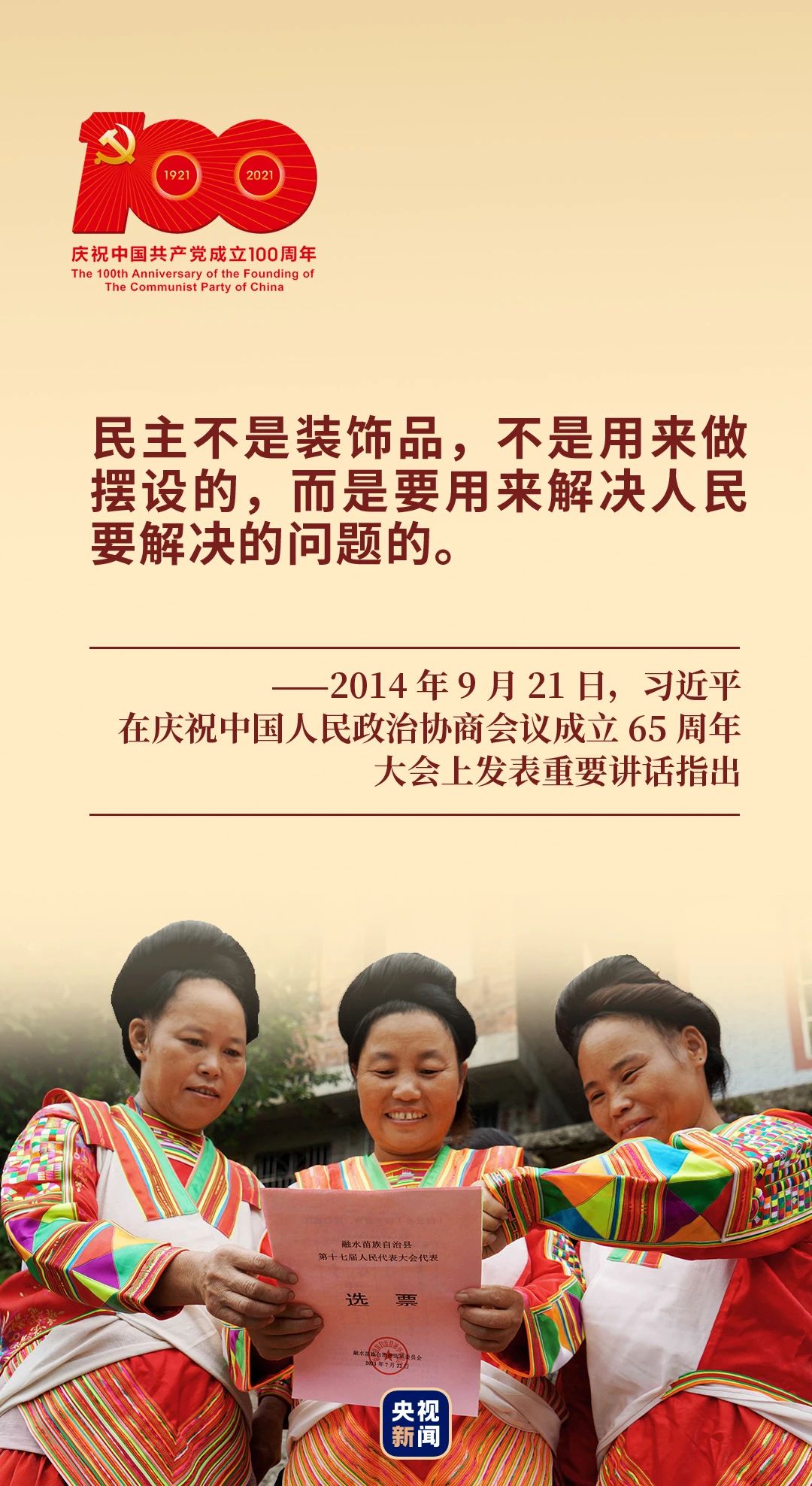 2021年7月1日,習(xí)近平總書記在慶祝中國共產(chǎn)黨成立100周年大會上發(fā)表重要講話指出,“踐行以人民為中心的發(fā)展思想,發(fā)展全過程人民民主。”