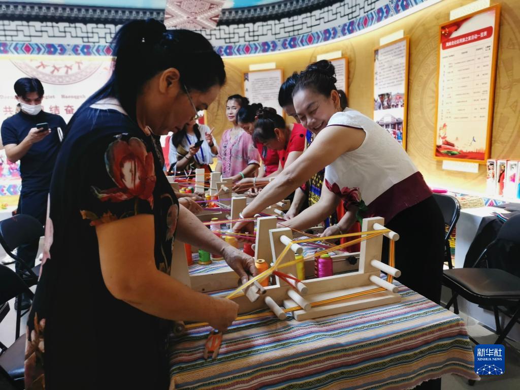 走進廣西南寧市青秀區(qū)鳳嶺北社區(qū)民族之家,10多位居民正在用簡易織機制作壯錦。“社區(qū)每月都會舉辦繡球制作、十字繡、剪紙等活動,我在這里生活了8年,早已把社區(qū)各民族同胞當(dāng)成家人。”壯族居民譚艷春說。