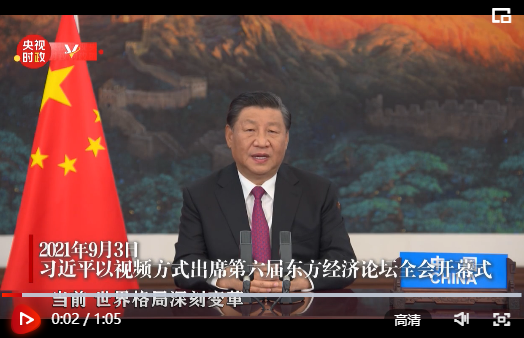 國家主席習(xí)近平9月3日應(yīng)邀以視頻方式出席第六屆東方經(jīng)濟(jì)論壇全會(huì)開幕式并致辭。
