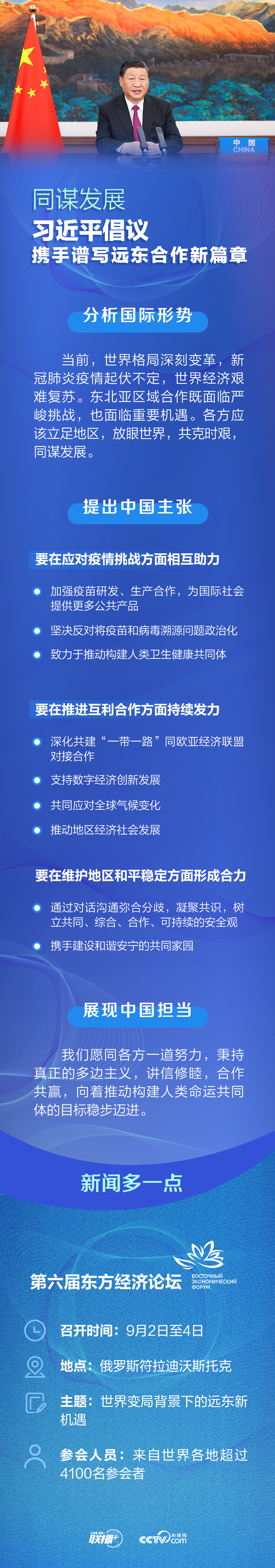 聯(lián)播+9月3日,習(xí)近平主席應(yīng)邀以視頻方式出席第六屆東方經(jīng)濟(jì)論壇全會(huì)開(kāi)幕式并發(fā)表題為《共克時(shí)艱,同謀發(fā)展 攜手譜寫遠(yuǎn)東合作新篇章》的致辭。