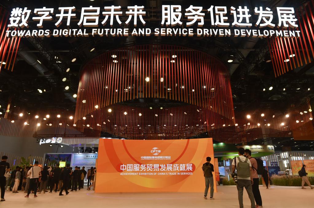 2021年8月31日,媒體記者在2021年中國(guó)國(guó)際服務(wù)貿(mào)易交易會(huì)國(guó)家會(huì)議中心展館內(nèi)探訪。 新華社記者 魯鵬 攝