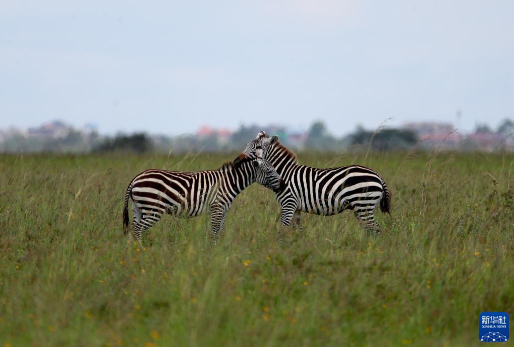 這是2021年5月19日在肯尼亞內(nèi)羅畢國家公園內(nèi)拍攝的斑馬。新華社記者 龍雷 攝