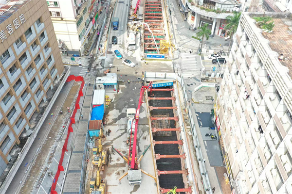 該站位于深圳福田鬧市區(qū),地下管線(xiàn)眾多復(fù)雜,管線(xiàn)保護(hù)壓力大;施工場(chǎng)地狹小,施工車(chē)輛作業(yè)受限;周邊環(huán)境復(fù)雜,需多次倒邊,嚴(yán)重制約著施工進(jìn)度。項(xiàng)目始終堅(jiān)持策劃先行,方案創(chuàng)效的管理思路,采取加強(qiáng)工序銜接,優(yōu)化施工過(guò)程;增加施工機(jī)械、人員等投入,形成多個(gè)作業(yè)面施工;調(diào)整作息時(shí)間,管理人員與施工班組同步上下班等多種舉措,克服各種施工限制,安全有力推進(jìn)施工進(jìn)度。后續(xù)施工中,項(xiàng)目部以“大干一百天 決勝四季度 沖刺全年任務(wù)目標(biāo)”勞動(dòng)競(jìng)賽為契機(jī),現(xiàn)場(chǎng)施工“全面開(kāi)花”,緊盯節(jié)點(diǎn)目標(biāo),搶抓形象進(jìn)度,盯牢安全質(zhì)量,全力攻堅(jiān)年度目標(biāo)。(文/張倩)
