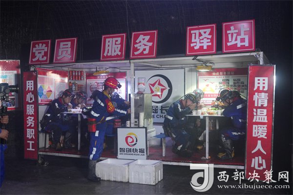 西部決策網(wǎng)訊 “開飯啦!”隨著技術(shù)員劉彪的一嗓子,大家紛紛放下手中工具向“餐廳”聚攏,豐富多樣的班中餐在餐桌上一字排開,散發(fā)著熱氣騰騰的香味,職工一邊吃著可口的飯菜,一邊討論著接下來(lái)的工作。這是發(fā)生在檸條塔礦業(yè)有限公司掘進(jìn)三工區(qū)井下工作面現(xiàn)場(chǎng)的一幕。
