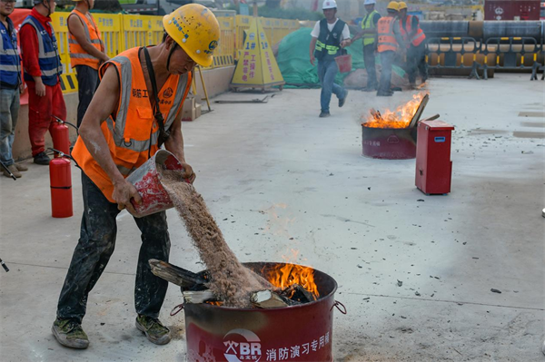11月9日是第32個(gè)全國(guó)消防日。這次消防演練模擬火災(zāi)發(fā)生后如何使用干粉滅火器、干沙滅火,生活區(qū)宿舍起火員工俯身毛巾捂住口鼻逃生、昏迷受傷員工的轉(zhuǎn)移救治,以及消防救援機(jī)構(gòu)的介入救援等方面進(jìn)行演練。項(xiàng)目監(jiān)理單位點(diǎn)評(píng)時(shí)認(rèn)為,此次演練基本上是按照實(shí)景進(jìn)行的,進(jìn)一步增強(qiáng)了項(xiàng)目的應(yīng)急應(yīng)變、團(tuán)隊(duì)協(xié)調(diào)和處置保障能力,為應(yīng)對(duì)突發(fā)事件積累寶貴經(jīng)驗(yàn),保證安全生產(chǎn)工作全面落實(shí)。
