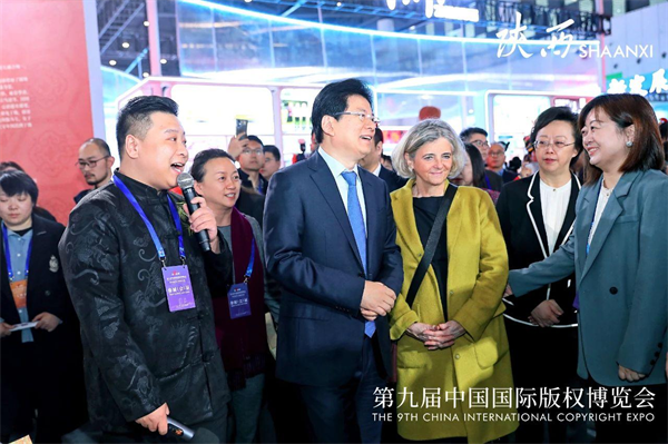 11月23日上午,中宣部副部長(zhǎng)張建春、世界知識(shí)產(chǎn)權(quán)組織副總干事希爾維·福爾班等一行來(lái)到陜西館,聽(tīng)取了陜西館的情況介紹并予以高度評(píng)價(jià)。