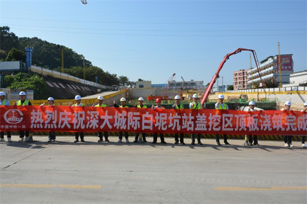 11月26日,隨著蓋挖區(qū)頂板最后一方混凝土澆筑完成,由中鐵一局承建的深大城際白坭坑站項(xiàng)目主體結(jié)構(gòu)蓋挖區(qū)頂板全部施工完成,標(biāo)志著項(xiàng)目全面進(jìn)入主體結(jié)構(gòu)施工階段,為后續(xù)工作加速推進(jìn)奠定了堅(jiān)實(shí)基礎(chǔ)。