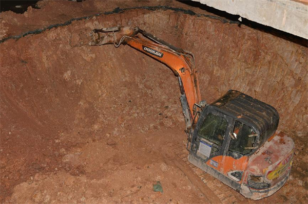 作為最能說明項目部可以在“瓷器店里打老鼠”的施工,就是維也納酒店門前下放地下連續(xù)墻鋼筋籠。大家知道,車站的地連墻是保證地鐵車站安全的基礎和關鍵。如前所述,深圳地鐵11號線中大八院站是在窄小空間里“舞刀弄棒”,而南翼的維也納酒店門廳檐角在空間侵入地連墻,導致有4幅地連墻無法正常施工。項目部以婁閃為首的管理團隊,組織技術骨干,反復研討、比選方案,確定采用“低凈空成槽設備成槽,鋼筋籠分片槽內平移施工技術”方案。在鋼筋籠入槽時,履帶吊“上提、前進、轉臂、下放”等平穩(wěn)操作,將每片長約35米、重約30噸鋼筋籠下放到槽內。下放鋼筋籠時,籠體距離門廳最小距離僅有3厘米,實現(xiàn)了對門廳“零碰撞、零剮蹭”。該施工技術為深圳地鐵施工首例。
