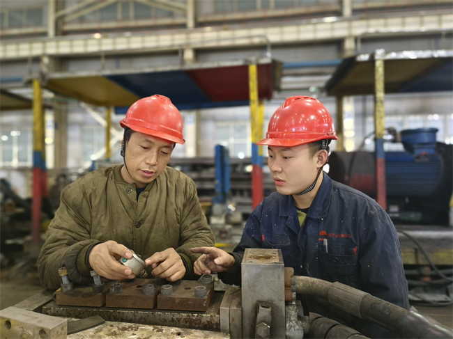 除夕一大早,姜肖航就跟著師傅任永峰在車間內檢修設備。