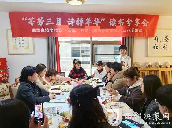 西部決策網(wǎng)訊(記者帥華鋒 通訊員 羅浩)馥郁書香傳萬家,鏗鏘玫瑰綻芳華。3月7日下午,在第114個(gè)“三八”國際勞動(dòng)?jì)D女節(jié)來臨之際,民盟寶雞市行政一支部聯(lián)合新階層支部在金茗和茶館舉辦“芬芳三月 詩樣年華”讀書分享會(huì),通過讀書感受經(jīng)典,開闊視野,提升素養(yǎng),在書香中提升自我。民盟市行政一支部主委馬妮娜、民盟寶雞市新階層支部副主委岳璐出席活動(dòng)。