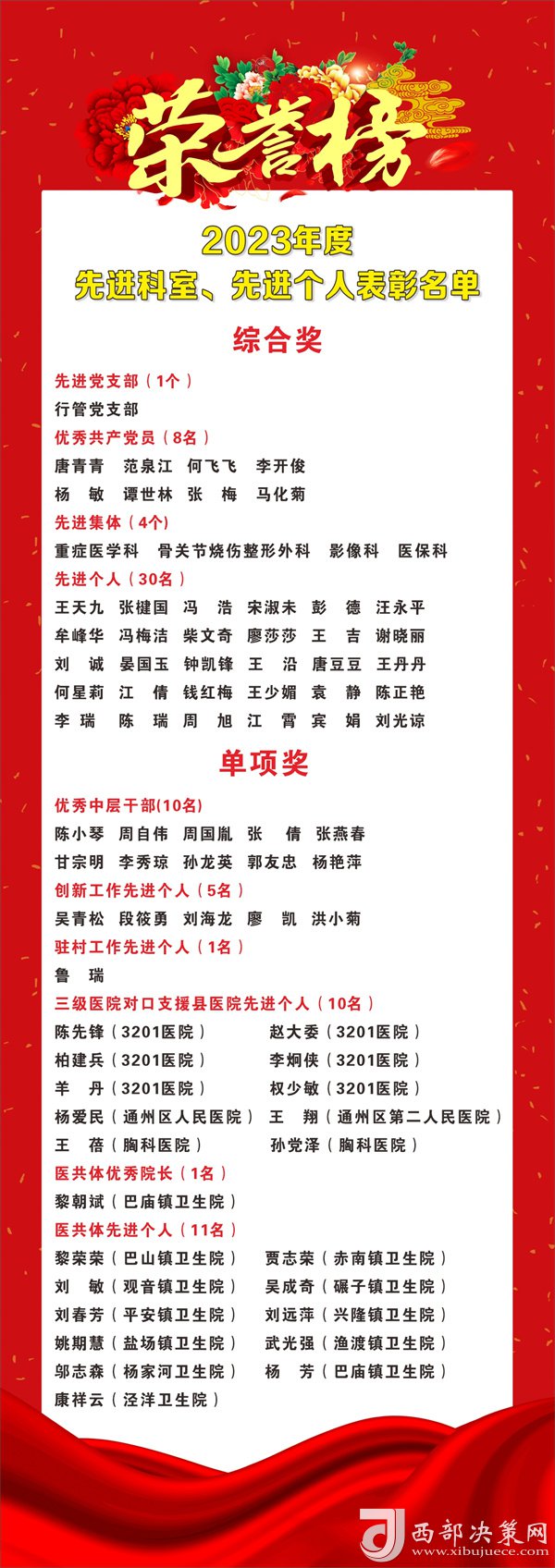 會議宣讀并表彰了2023年度醫(yī)院的先進集體和先進個人。