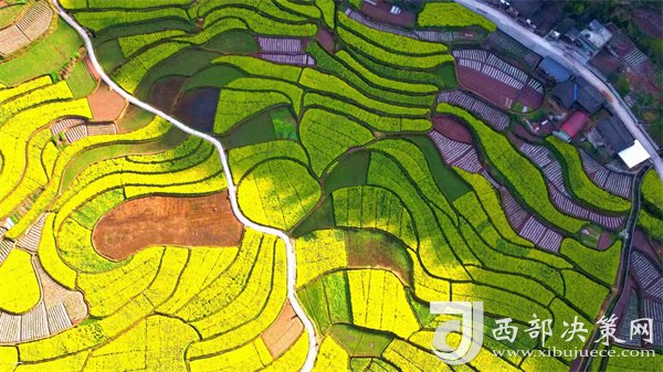 西部決策網(wǎng)訊 三月中旬,花紅柳綠,春雨綿綿。一腳踏進(jìn)鎮(zhèn)巴簡(jiǎn)池鎮(zhèn)李塘村,心都醉了。千畝田園油菜花進(jìn)盛花期,站在高處遠(yuǎn)望,金黃燦爛、層層疊疊的油菜花田依山傍水,清香撲鼻,美不勝收,與連綿的青山、清澈的河水、蜿蜒的公路、穿梭來(lái)往的游客、漂亮的民居、春耕的村民等交相輝映,構(gòu)成一幅美麗的鄉(xiāng)村振興“調(diào)色板”和春日鄉(xiāng)村畫(huà)卷。