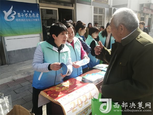 深入開展肺結核防治知識進社區(qū)活動。3月24日,縣衛(wèi)健局、疾控中心、縣人民醫(yī)院、縣紫柏衛(wèi)生院聯合在城關社區(qū)開展了結核病和飲水安全宣傳活動。活動期間,醫(yī)務人員為群眾免費測量血壓、開展義診咨詢,現場志愿者從結核病的傳播途徑、防控措施及國家的優(yōu)惠政策方面,對前來咨詢的群眾進行了詳細的解答,為來往居民介紹了結核病、飲水安全小知識?;顒赢斕欤灿嫲l(fā)放肺結核宣傳年畫200余張,宣傳冊、宣傳彩頁共計10余種500余份,圍裙、手提袋300余個,為群眾提供咨詢服務100余人次。